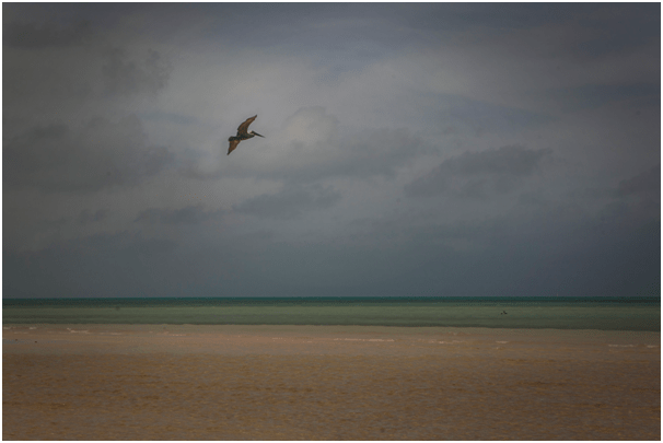 走在松软的沙滩上,大西洋蓝蓝的天上瞬间阴云满布,洒落一阵小雨。一只苍鹭奋力从海面起跃,冲向云天,飞向远方。望着这远去的生灵,想起和田福几十年交往的点点滴滴,不胜唏嘘。