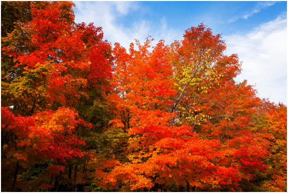 走进一条小街,秋天把街区涂抹成了一幅浓妆重彩的油画。加拿大是枫叶之国,渥太华更是红枫之都。从初春的嫩绿,到夏天的苍翠,再到深秋的鲜红,一树树的枫叶,承载着从春到秋所积聚的能量,在这晚秋的晴日里,像一簇簇燃烧的火焰,挂在碧蓝的天幕上,肆无忌惮地红着,红了树木,红了树木旁的房屋,红了一幢幢各式各样的房屋所组成的这个静谧的街区,也红了在街区里散步者的心房。青绿的雪松,湖蓝的云杉,像一粒粒珍珠点缀在这枫红的海洋中。走进这如画的美景,疫情中负重的心豁然开朗,喜悦和感恩充满内心,赞叹造物主的奇妙伟大。