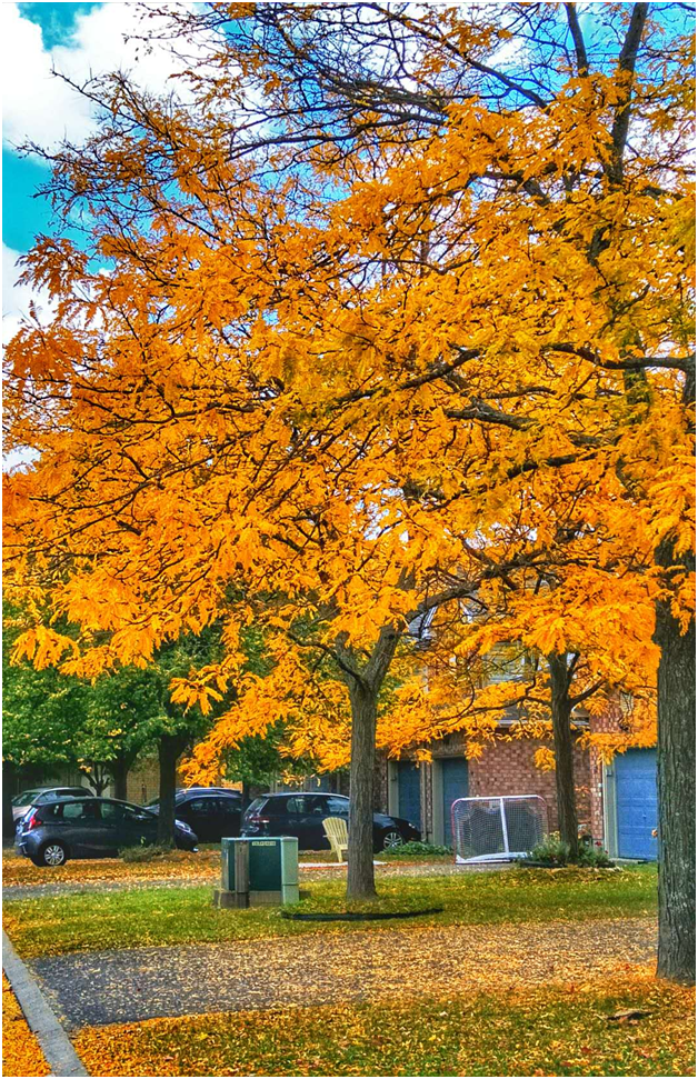 二零二零年的晚秋,渥太华每天飙升的新冠确诊数字,挡不住枫红槐黄的秋景如画。书房窗户外,邻居家那棵槐树的叶子黄了。望着这满目秋色,想起母亲窗外今年少了的那一抹槐黄。树没有了,但根依然深深地扎在泥土里,一如既往地守望着那个农家院落,守望着游子对亲人的思念。