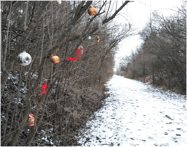 快过圣诞节了,有人把圣诞树上的饰品挂在了小径旁一丛灌木枝上,为冬天的小径披上了节日的彩妆。虽然城市依然笼罩在疫情的乌云之下,虽然人们的生活方式和行为方式因为疫情而被迫发生了许多改变,但有什么能阻挡人们心中对美善的渴望与追求呢?