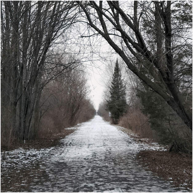 渥太华有一条绿带,是城市里一条飘扬的绿巾。两百多平方公里的绿地、农田、湿地、和森林,自东而西穿城而过,构成了这个美丽都市中一个巨大的自然保护区,无数的野生动植物在这条绿带中繁衍生息。家旁的这条小径,从这条绿带的一片森林中穿过。据说沿着这条小径,一路向东可以走到大西洋边,一路向西可以直达太平洋,如果向北,能够看见北冰洋,是横跨加拿大全境的一条步道(Trans-Canada Trail)中的一小段。